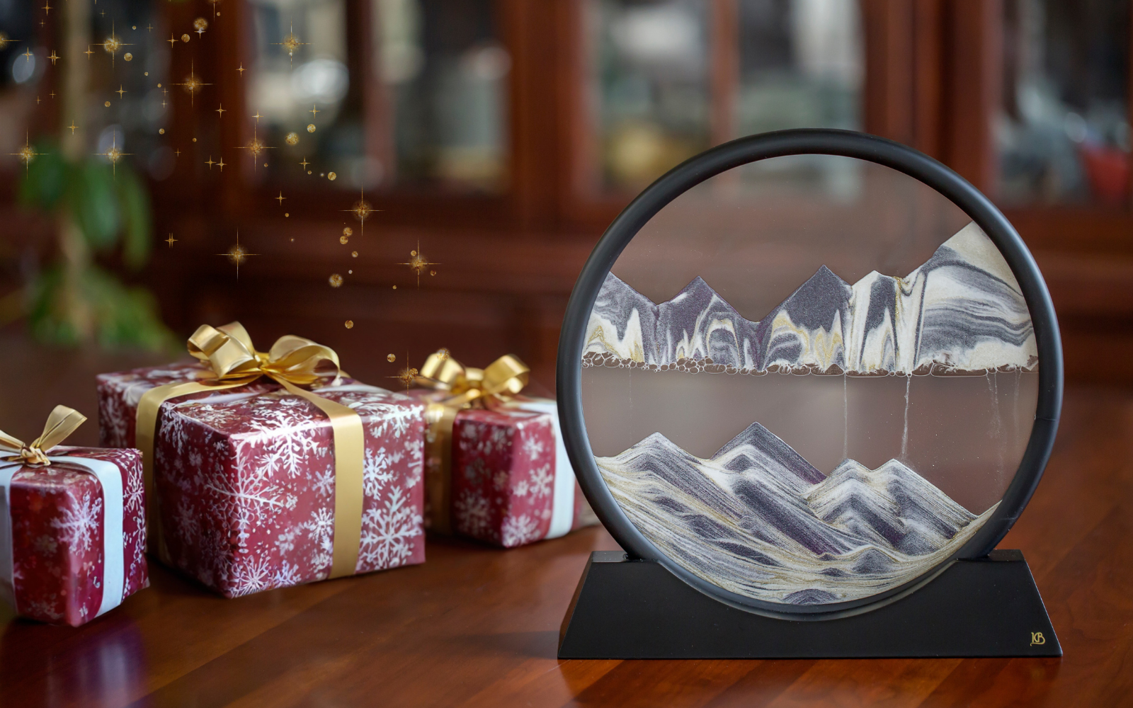 Discover the captivating world of KB Collection moving sand art pictures, where each handcrafted piece is interactive, ever-changing, mesmerizing, and versatile. You will be enchanted as you flip the sand picture and watch the elements engage in a beautiful dance right before your eyes. The sand gently flows between air bubbles and water, forming unique layers in the sand mountains that are never identical.