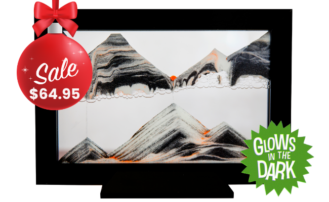 The KB Collection moving sand art is interactive, ever-changing, mesmerizing and versatile handcrafted art pieces. Turn the sand picture over to watch the battle of the elements: The sand just wants to settle at the bottom, the air just wants to escape to the top, the water hosts the party. The result is the sand trickles between the air bubbles to create fascinating stratifications in the sand mountains. More air creates a slower flow of sand resulting in a delicate trickle of sand making more dramatic peaks and valleys. Less air creates a faster flow of sand making dune shapes. Best of all, these handcrafted art pieces are equipped with an air hole to last for years on end, allowing for you to regulate the amount of air in each sand picture so you can make the sand fall as fast or as slow as you want.
